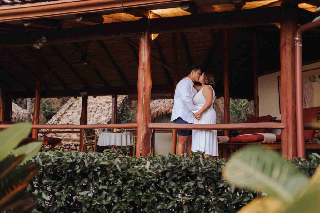 Perched high above the Pacific coast, Los Altos de Eros offers the kind of privacy that makes you forget about the outside world. Lush jungle views stretch toward the ocean. Sunsets melt into soft pink and gold. The property feels intimate and peaceful, intentionally curated for couples who crave meaningful time together.